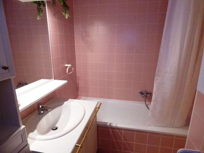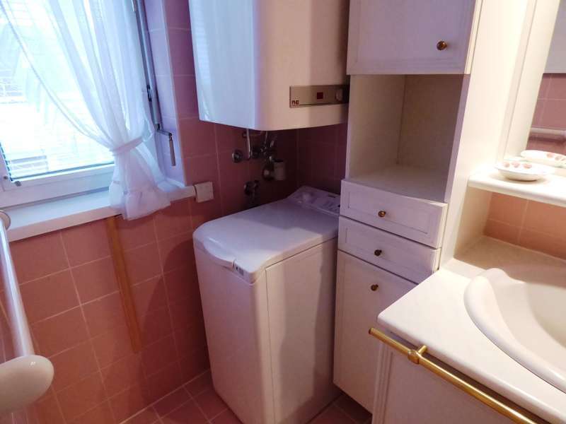• Bad mit Wanne und Waschmaschine, Badezimmermöbel mit Spiegel und Beleuchtung