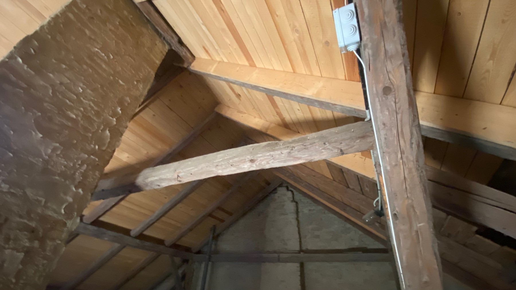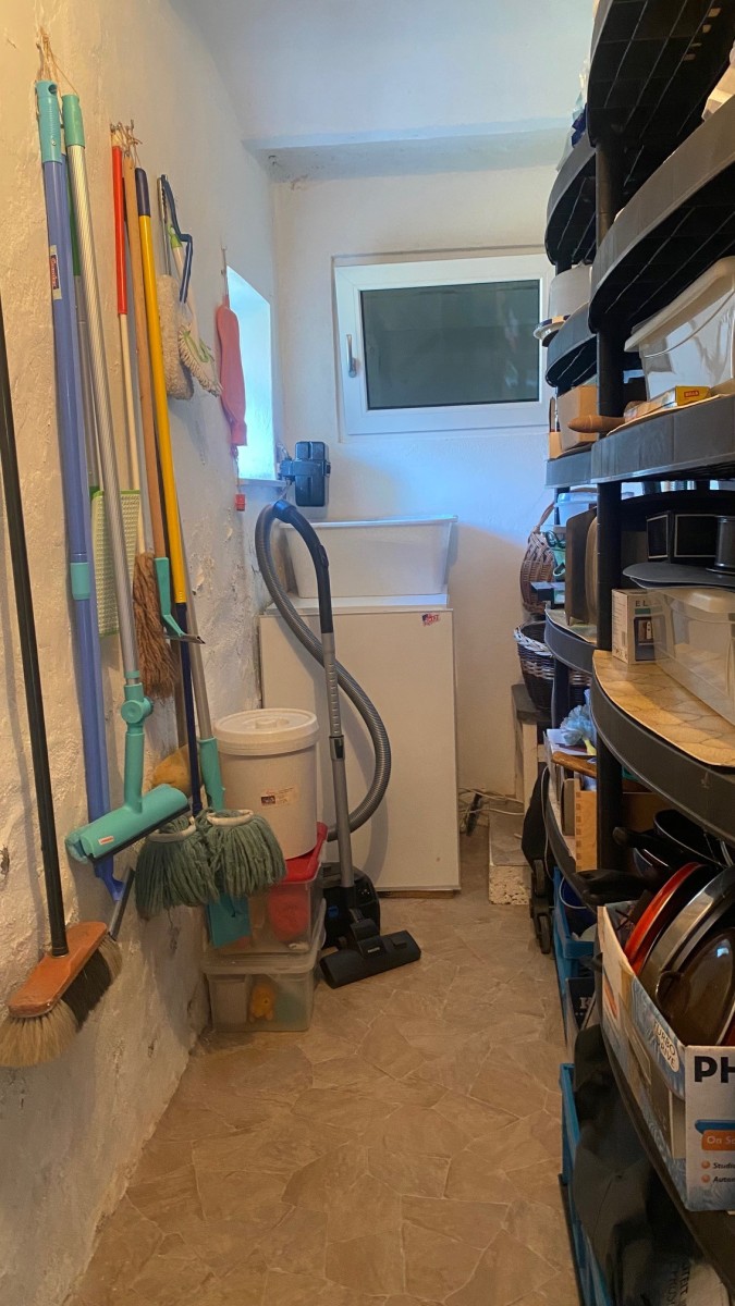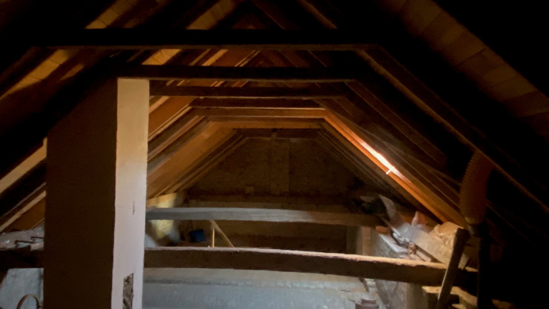 Nebengebäude: zwei Lagerräume und Treppe auf den Dachboden